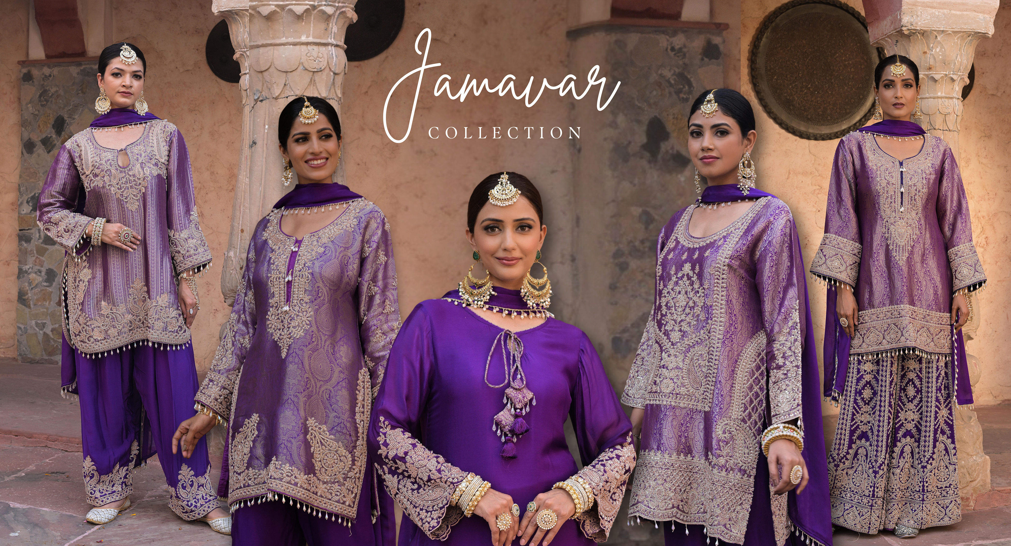 Make a regal impression with this purple brocade kurti and plazzo set. Heavy gold embroidery,...