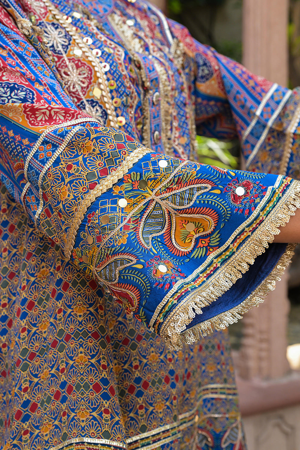 Blue Viscose Crepe Suit Set with Tulip Pants – Festive Chic