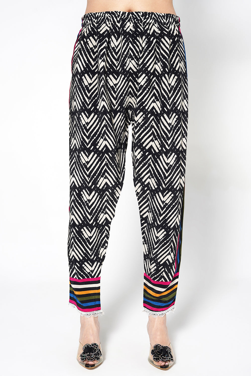 Elevate your festive wardrobe with this Mosaic black floral crepe Co-ord featuring dramatic botanical prints and patterned trousers. The relaxed silhouette and detailed neckline enhance its luxury appeal. Perfect for festive celebrations, evening events, and bold ethnic styling with contemporary sophistication.
